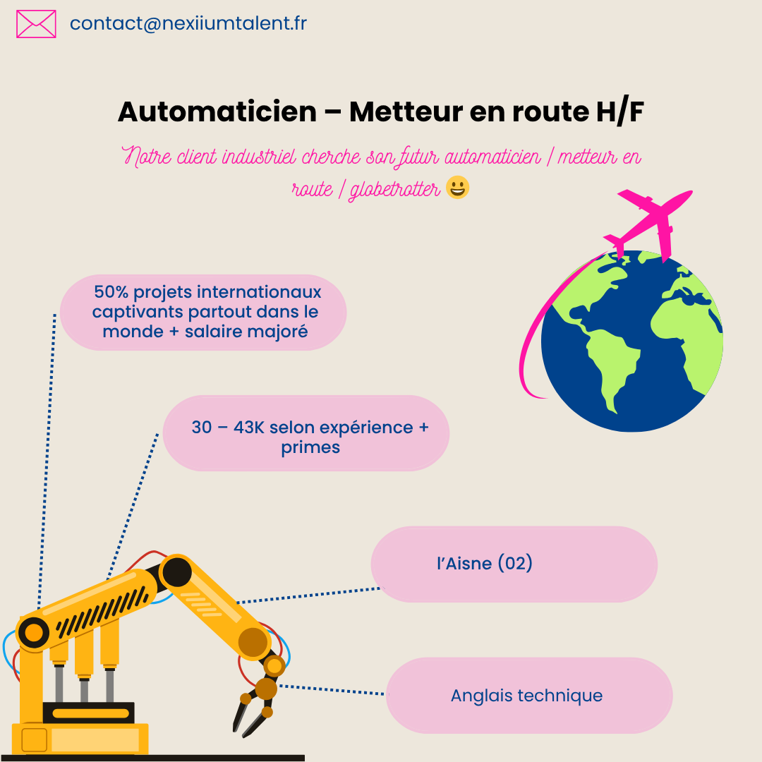 Notre client industriel qui créé des produits de grande qualité, et surtout à forte technicité, cherche son futur automaticien / metteur en route / globetrotter 😀